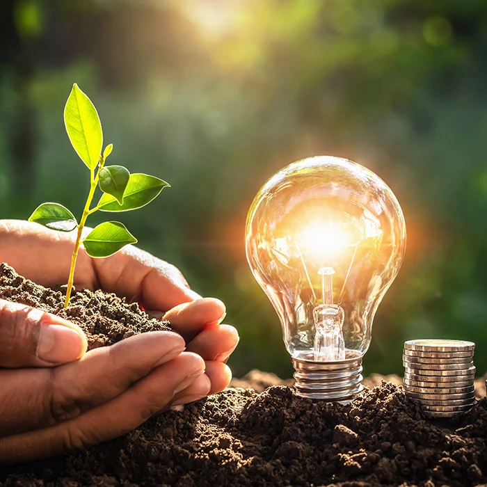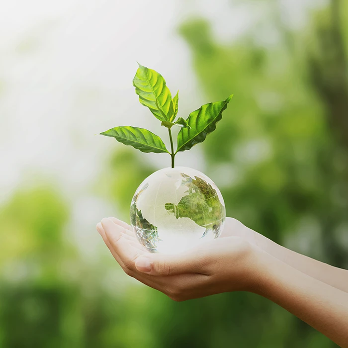 Hands holding a glass earth with a butterfly